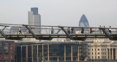 Le Millenium Bridge devant la Tower 42 et la Swiss Re